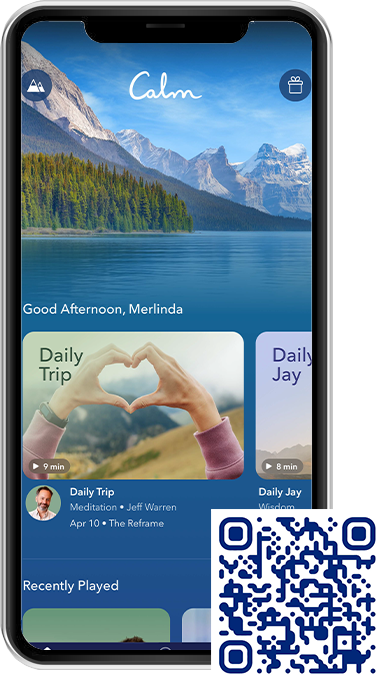 To register and download the app, scan the QR code for the Calm registration page and enter your company access code: saksglobal